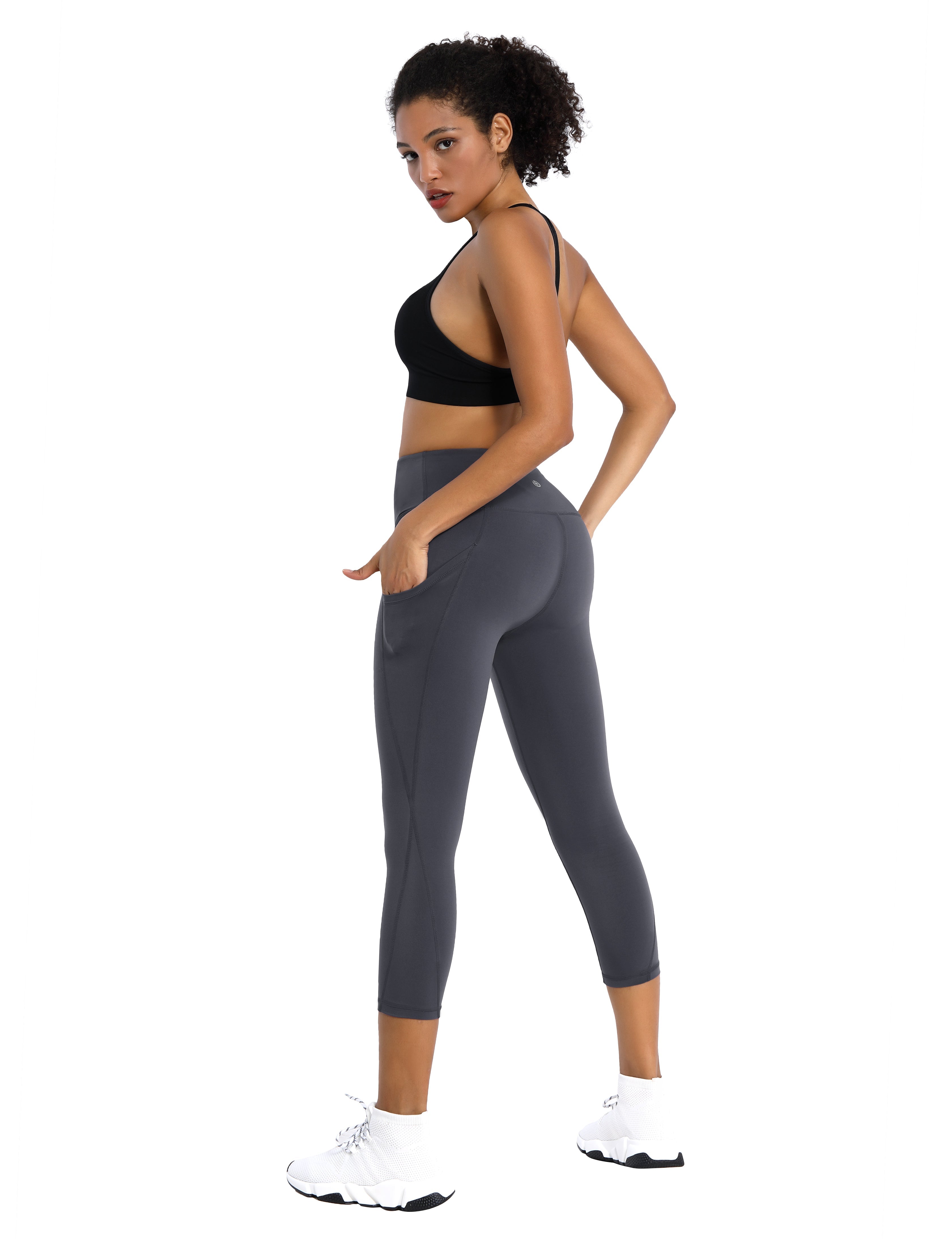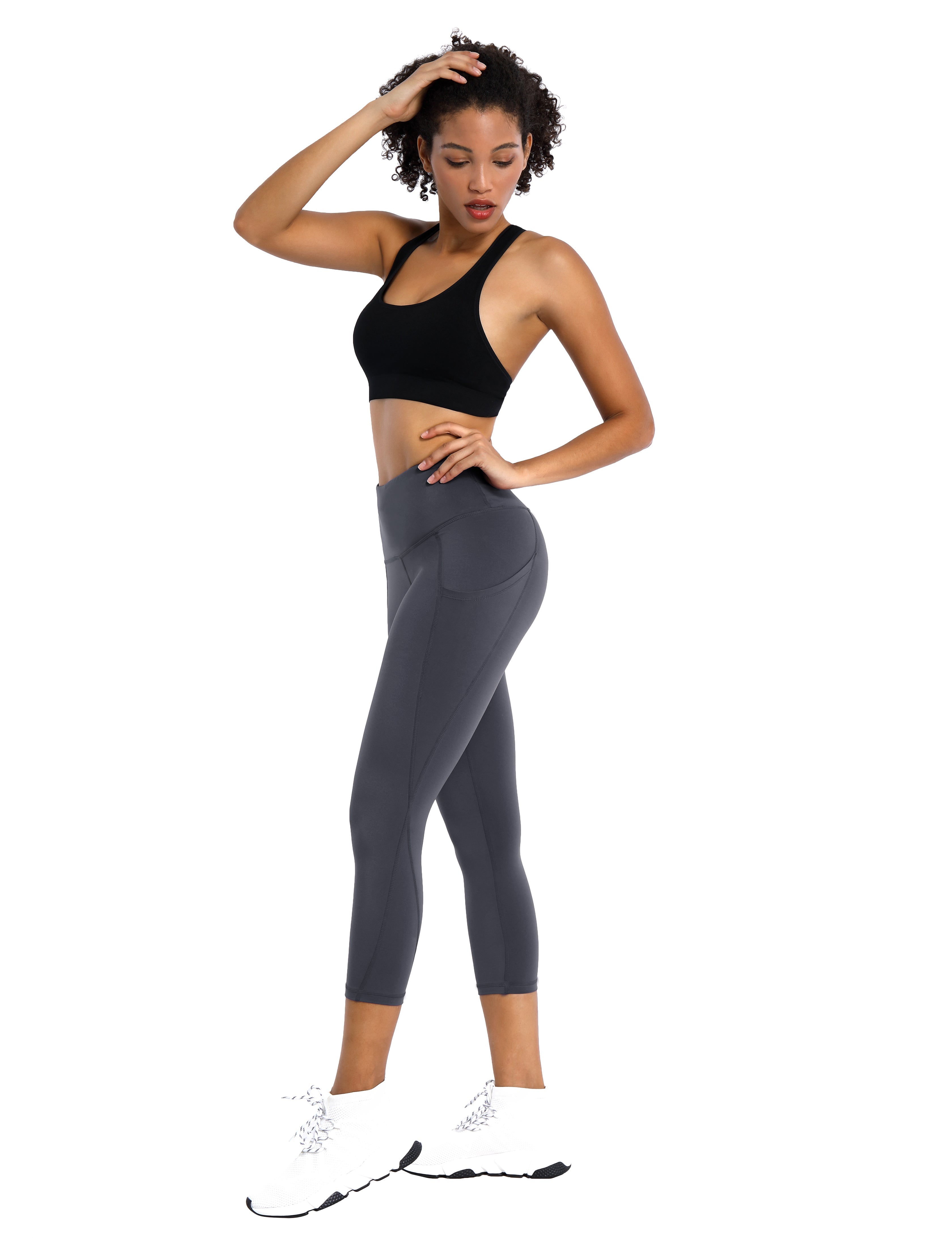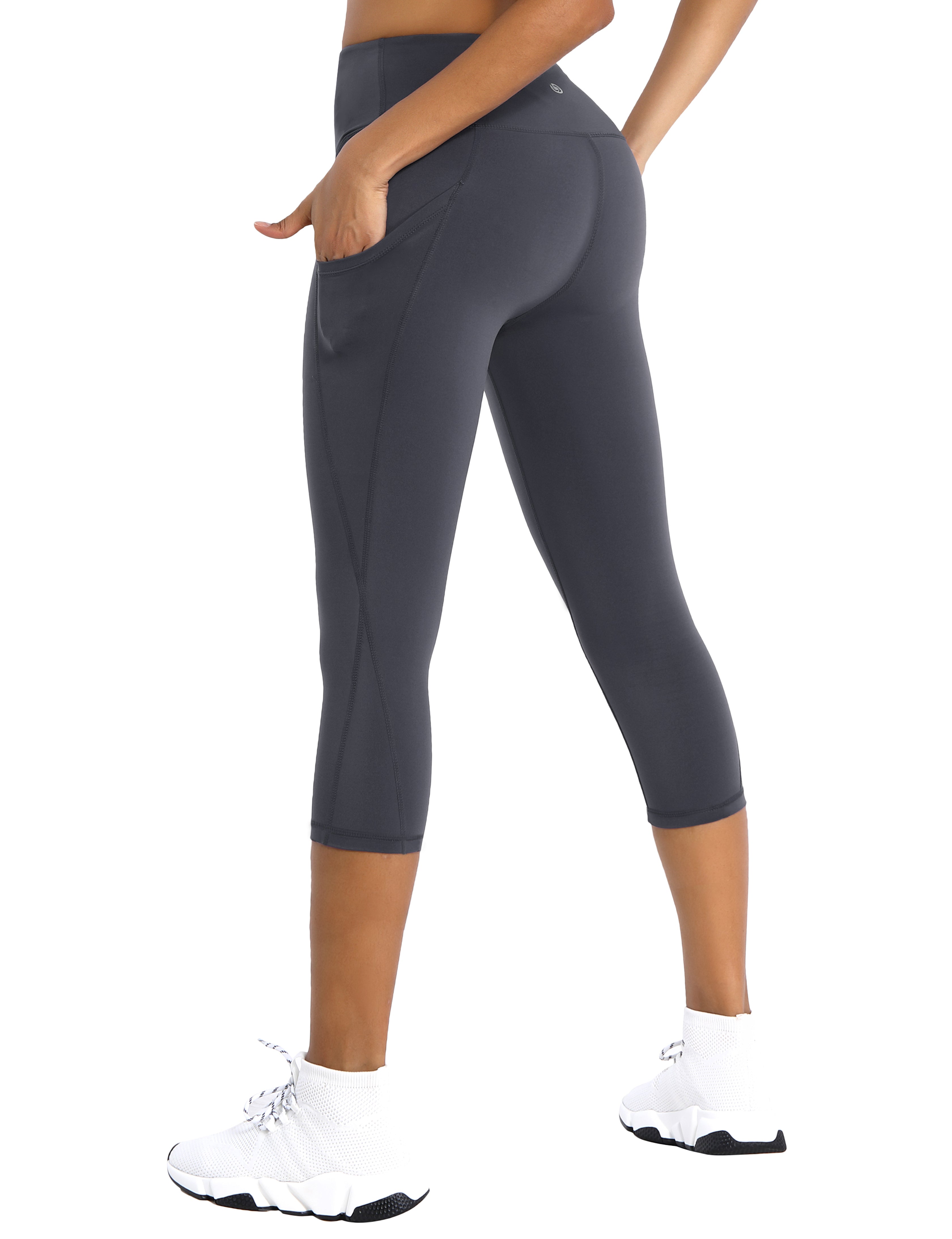 19" High Waist Side Pockets Capris shadowcharcoal_Tall Size