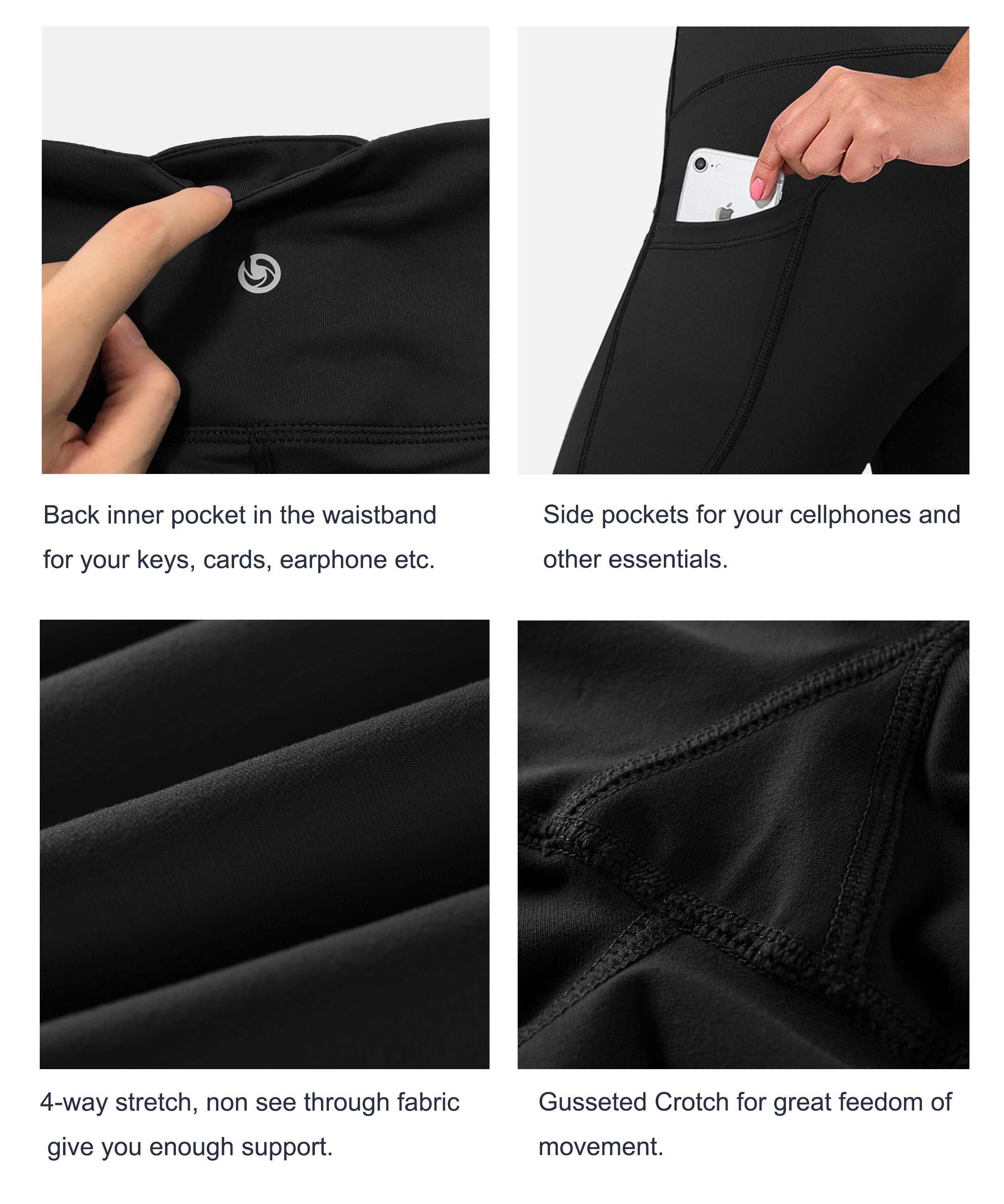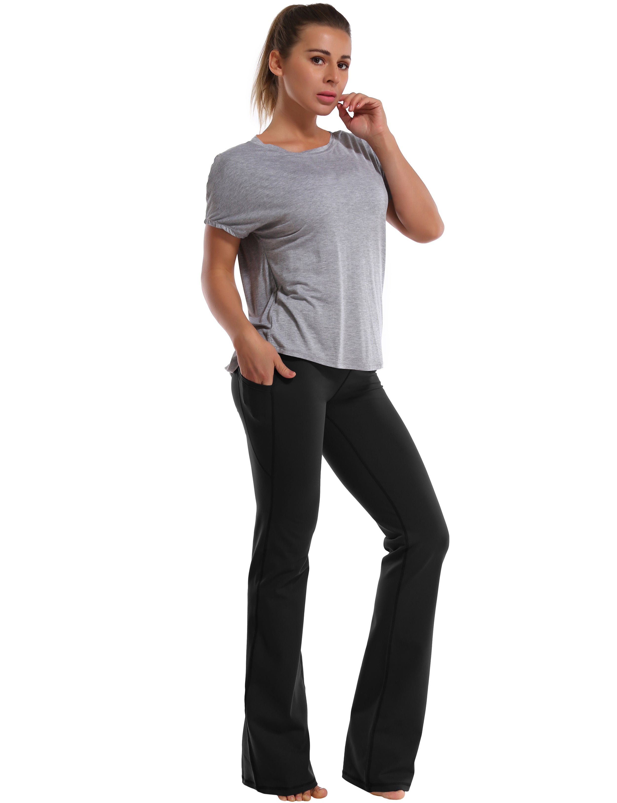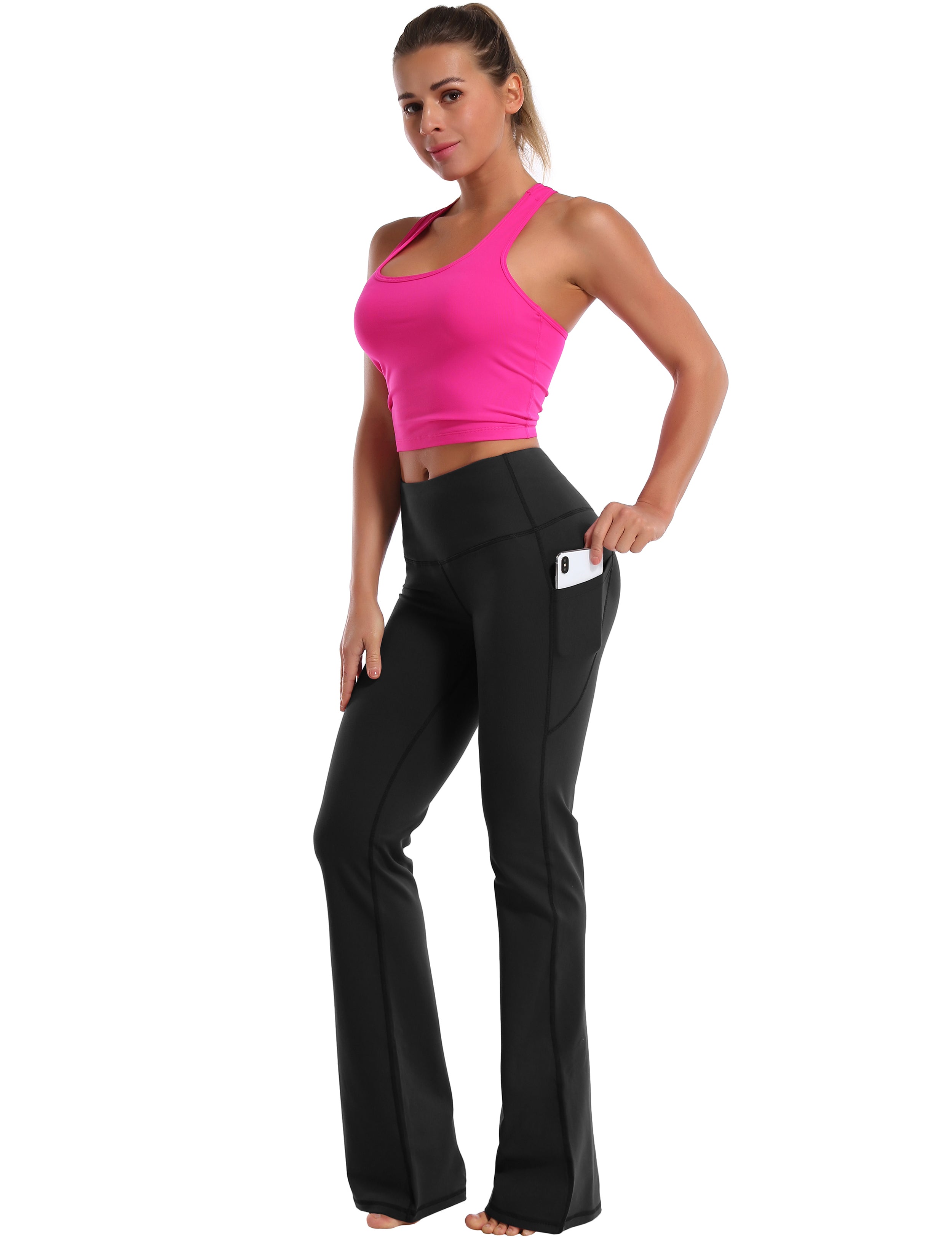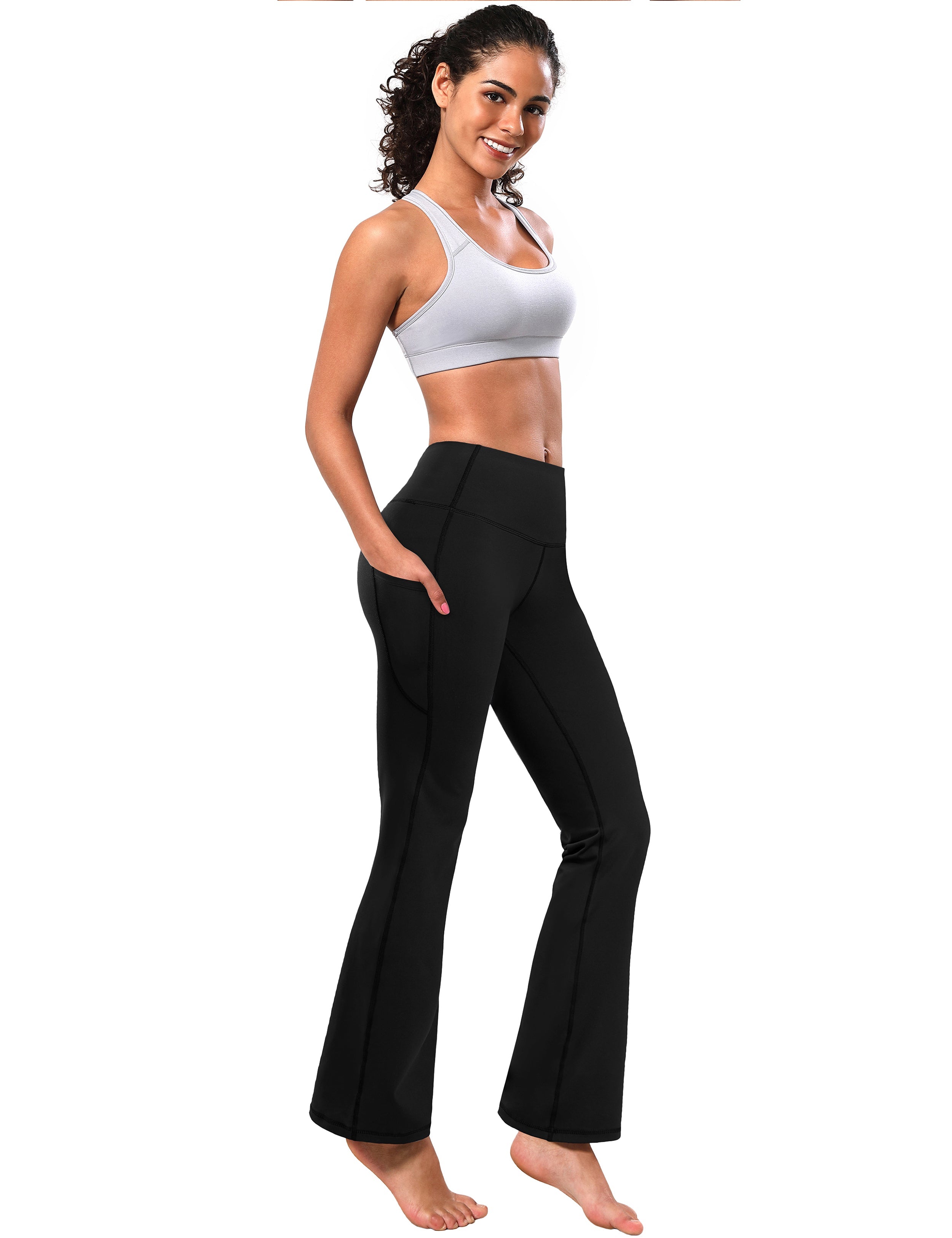 29" 31" 33" 35" 37" Side Pockets Bootcut Leggings black_Running