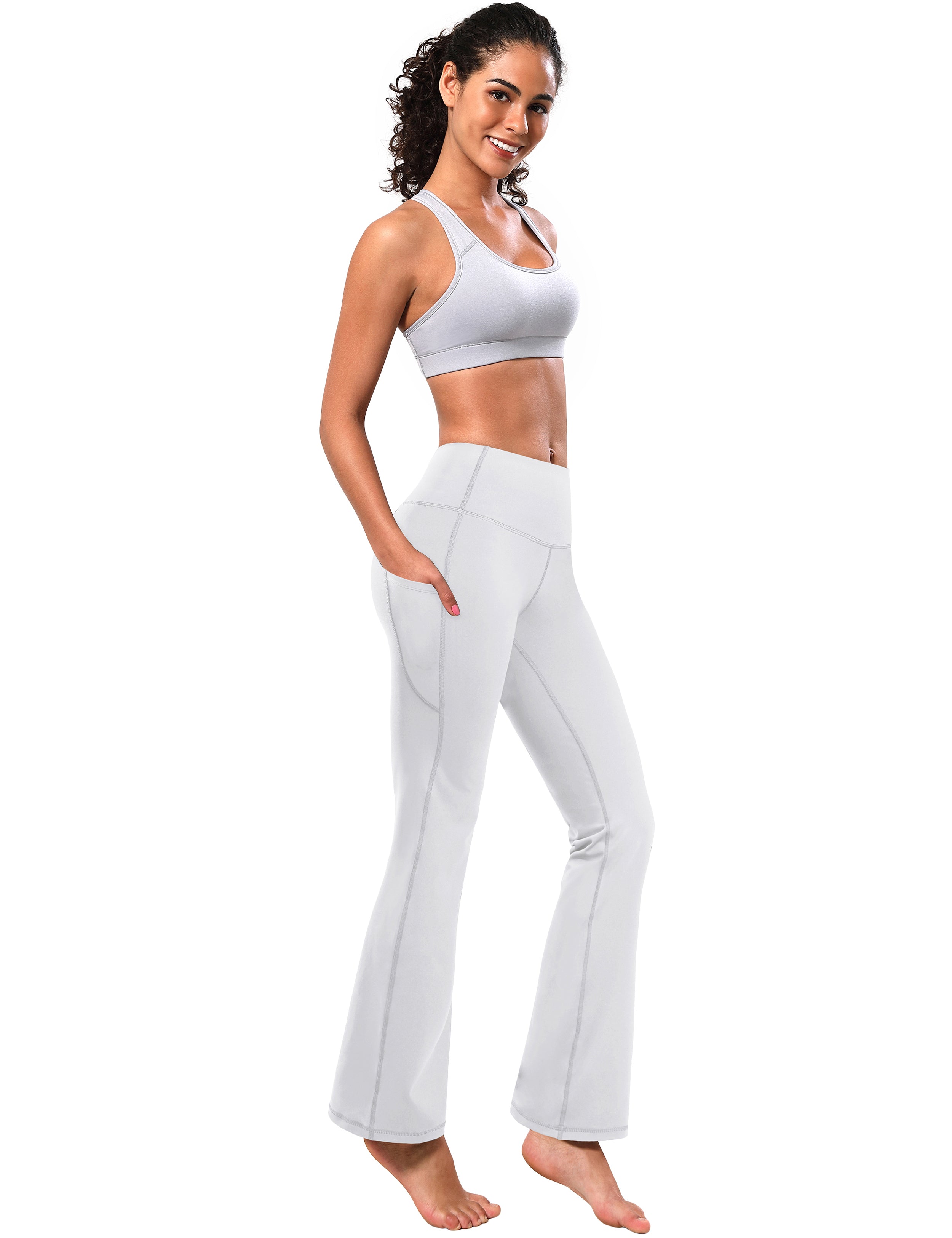 29" 31" 33" 35" 37" Side Pockets Bootcut Leggings white