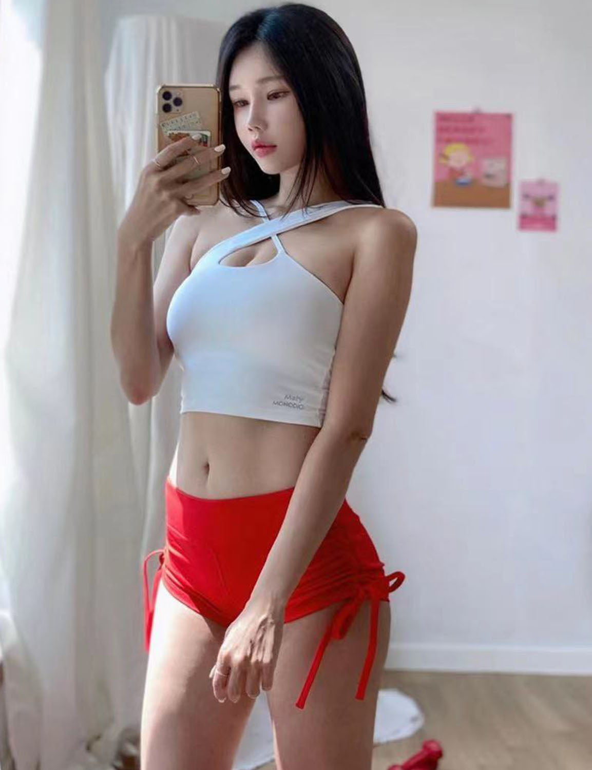 Side Drawstring Hot Shorts scarlet ins_Pilates