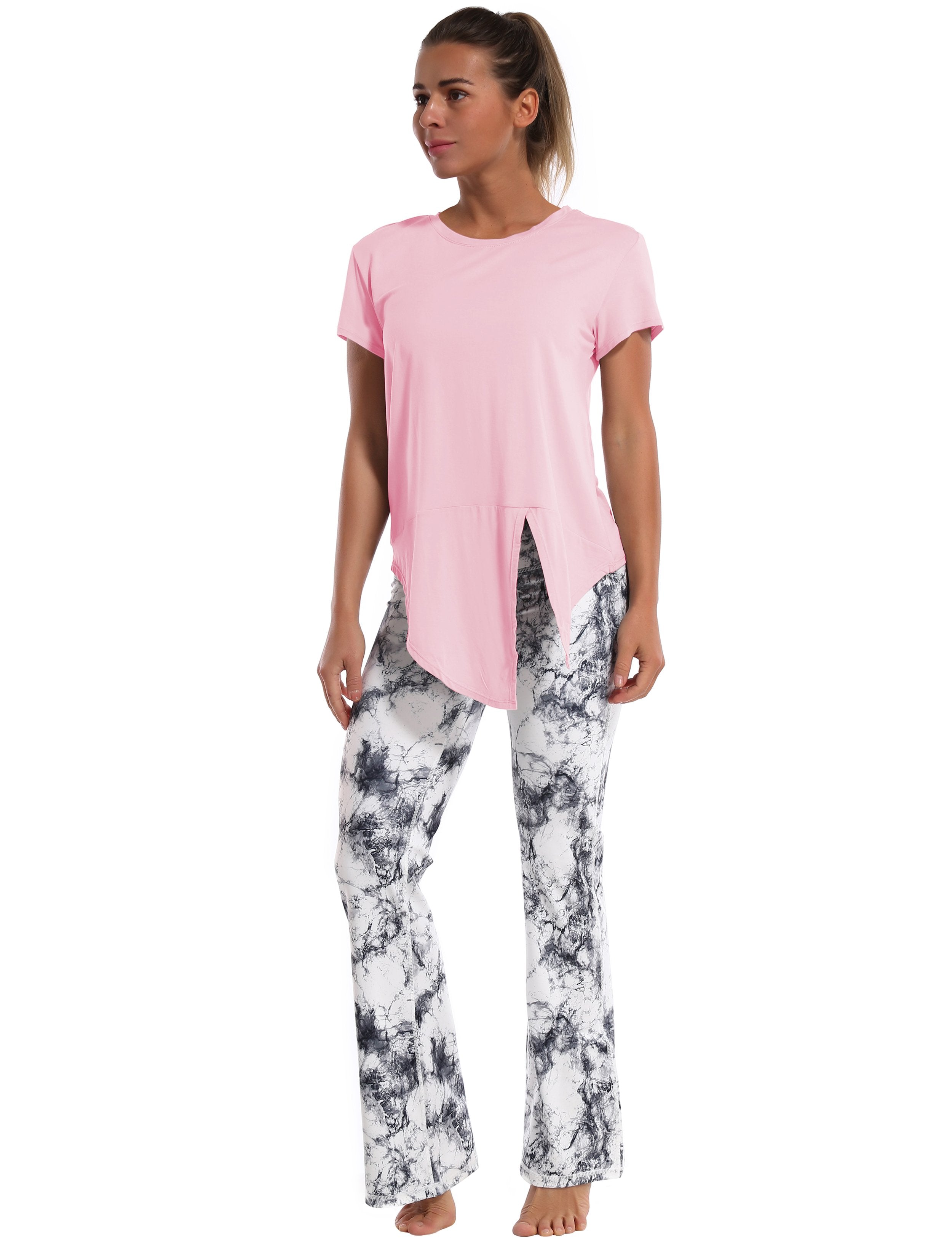 Tie Up Crop Top Short Sleeve T-Shirt lightpink ins_yoga