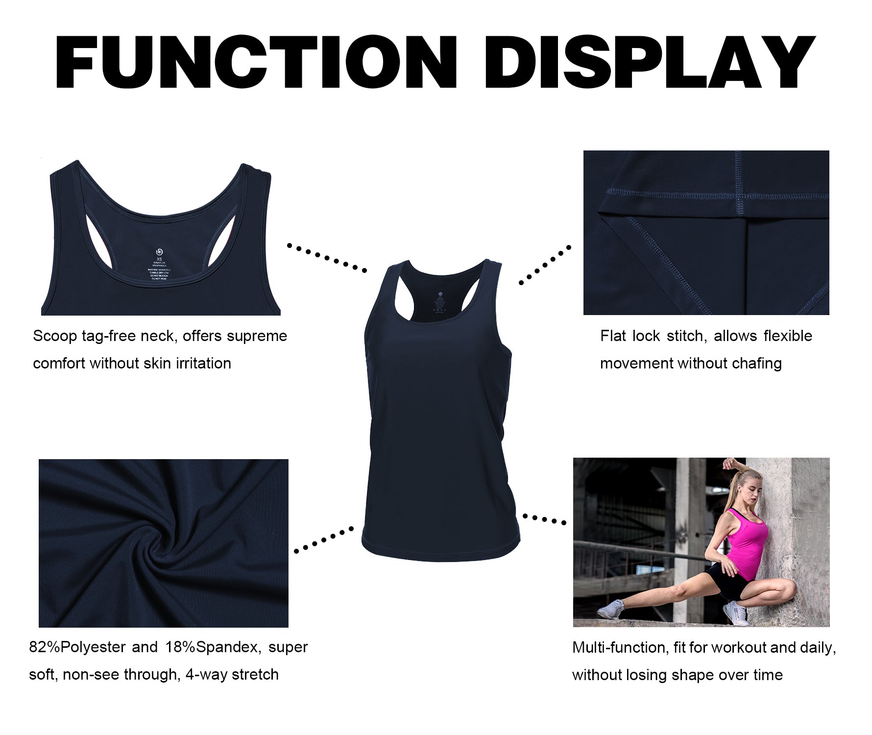 - MORE CHOICES: There are another fabric of these basic tank tops in our store. Pack of 1, 2 or 3 Brilliant Colors available. Save money and perfect your looks with the purchase of our women's scoop neck racerback sleeveless workout tops. Since just 1 basic racerback athletic tank top is never enough! Our basic racerback tank tops has micro-gaps, which pull away moisture and keep air flowing. Activate your body's natural relaxation response and relive your stress what make it the best tanks.